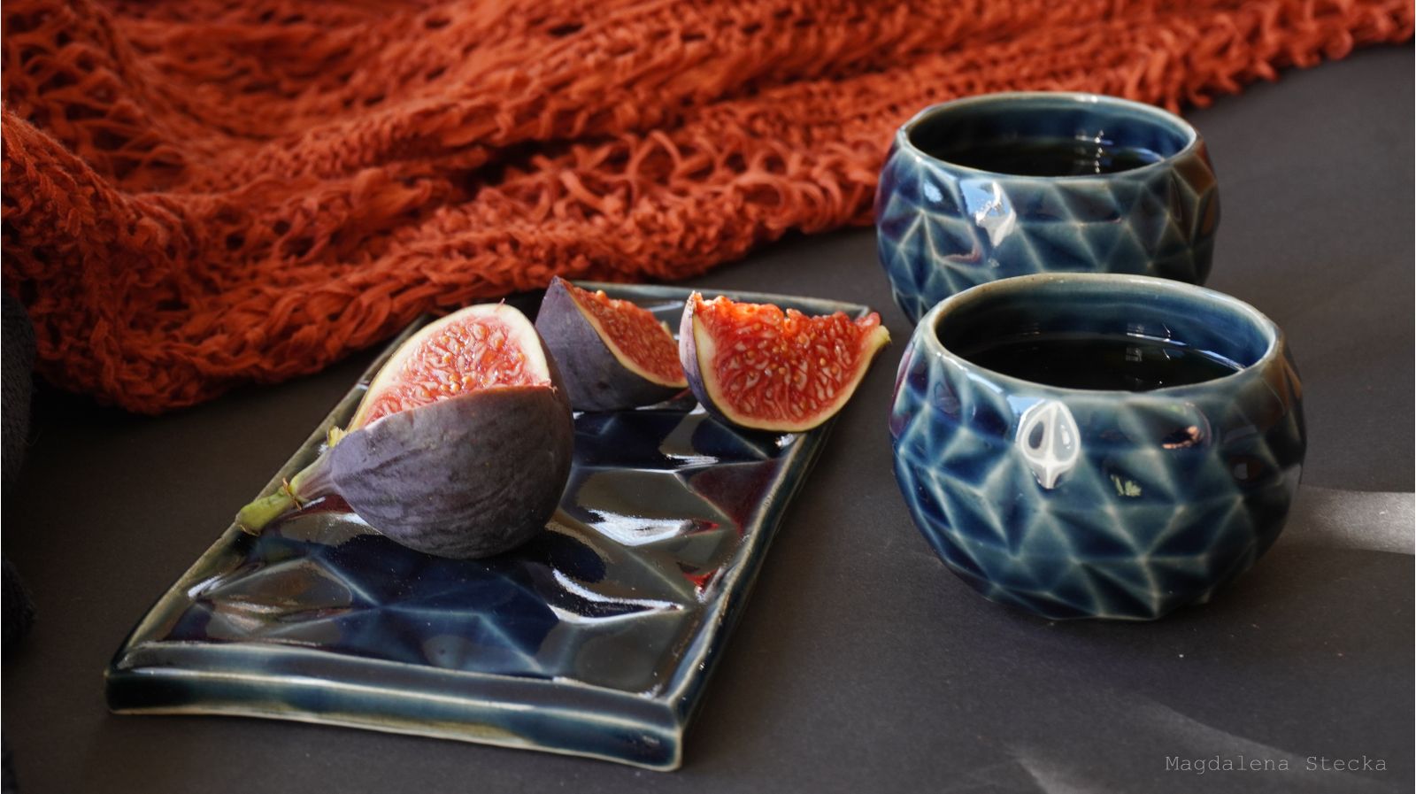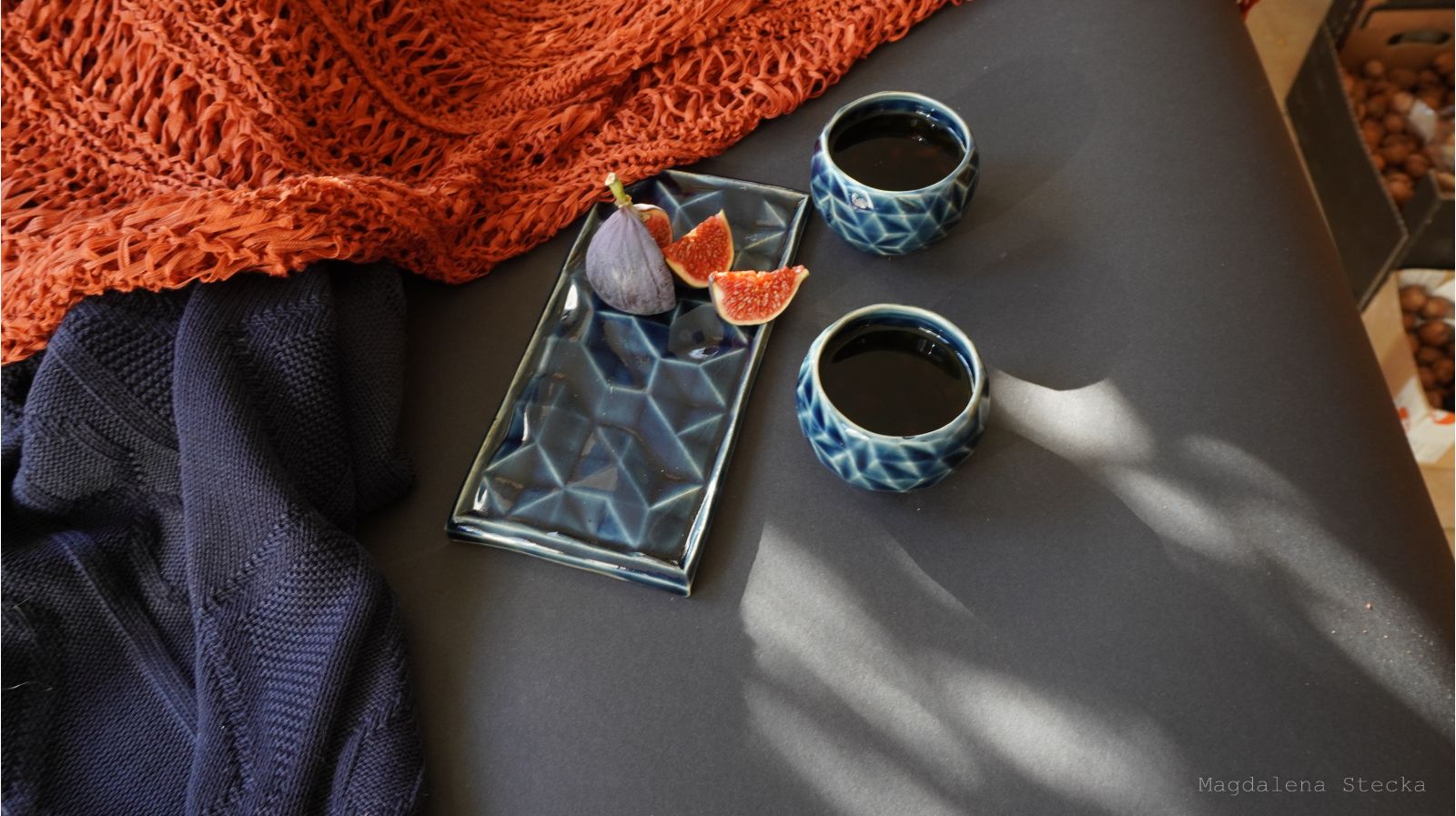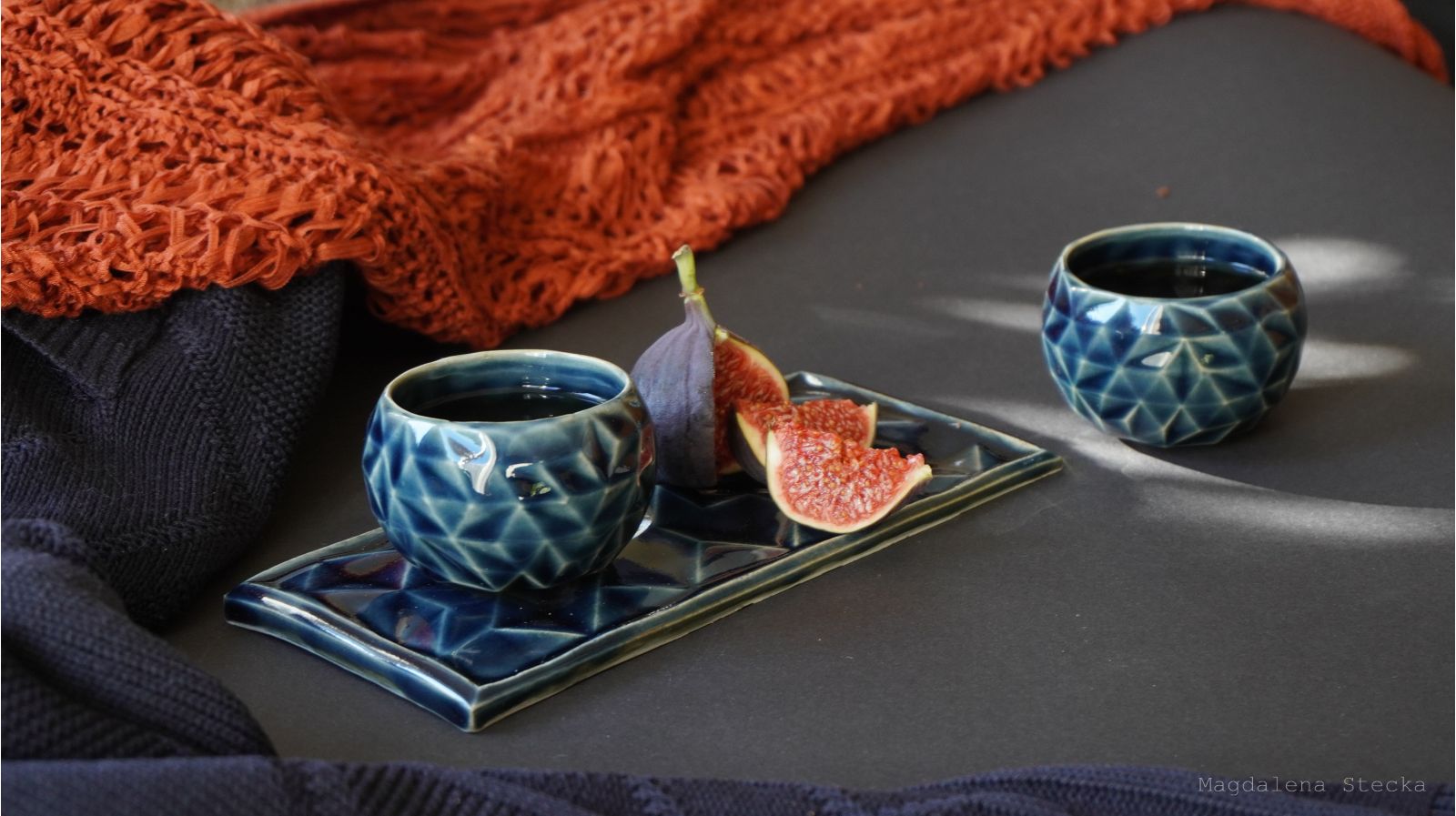 Czarki mają sferyczny kształt i geometryczny wzór trójkątów. Świetnie się sprawdzają do picia herbaty parzonej w tradycyjny sposób w dzbanku ale projektowane były z myślą o alternatywnych metodach parzenia kawy (chemex lub frenchpress). Okrągłe naczynia świetnie leżą w dłoni i powoli oddają ciepło. Dzięki temu cały smak i aromat mamy tuż pod nosem.