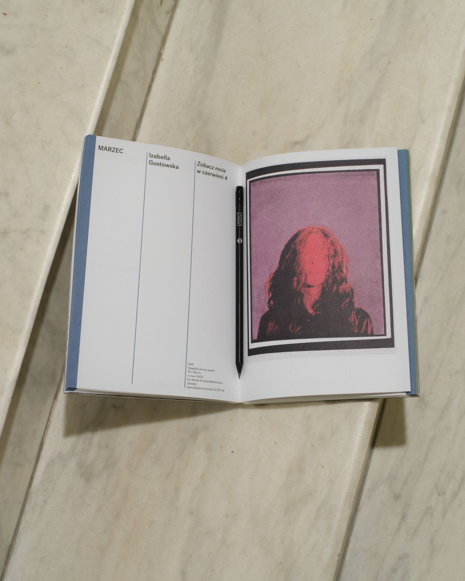 Dwanaście prac wybranych z 3800 dzieł w zbiorach Zachęty, wplecionych w kalendarz, stanowi poetycką mini opowieść o czasie i rytmie natury widzianym przez pryzmat kolekcji. Rysunki tuszem Barbary Zbrożyny (1923–1995) i Zofii Gramz (1981), fotografia Evy Rubinstein (1933), rzeźby Zuzy Golińskiej (1990) i Jadwigi Sawickiej (1959), obraz Anny Ostoyi (1978) i Erny Rosenstein (1913-2004) oraz tkaninę Małgorzaty Mirgi-Tas (1978) można oglądać jak wystawę – w rytmie miesięcy, ale też z perspektywy całości: jako przypomnienie, że sztuka potrafi uchwycić to, co w naturze najbardziej ulotne – zmianę. Grafiki z lat 60. i 70. XX wieku, których autorkami są Teresa Jakubowska (1930–2025), Izabella Gustowska (1948), Bożena Korska (1942) z kolei stanowią dziedzictwo czasów, kiedy artystki częściej wybierały tę technikę, łącząc pasję twórczą z obowiązkami życia codziennego.