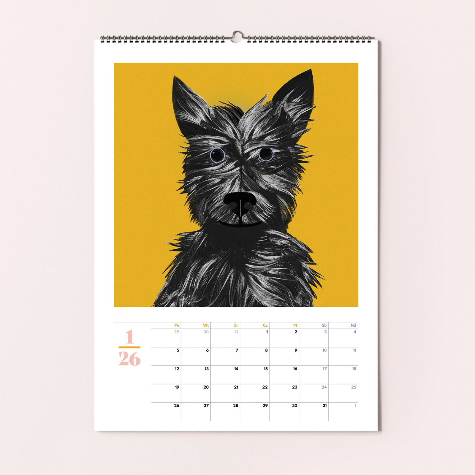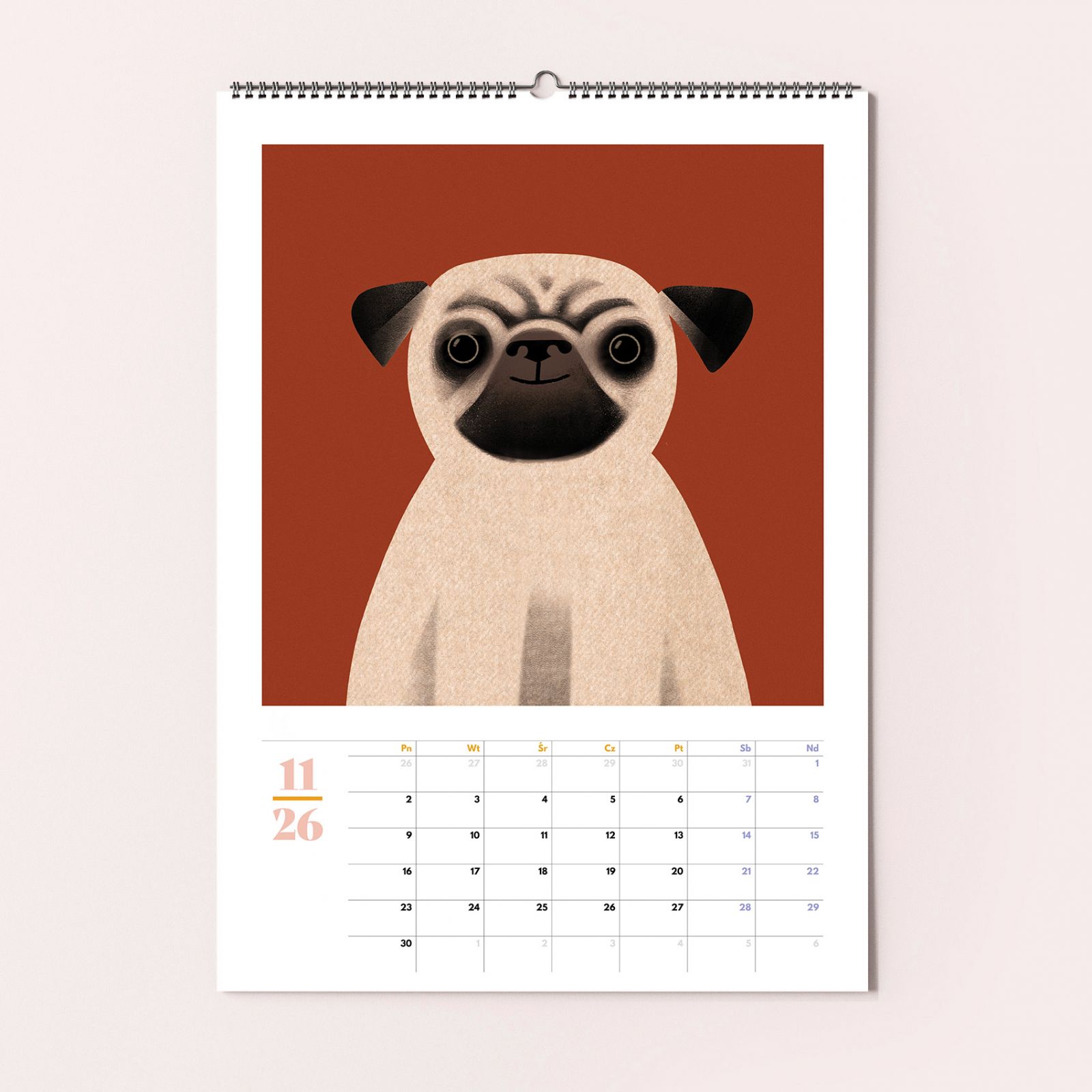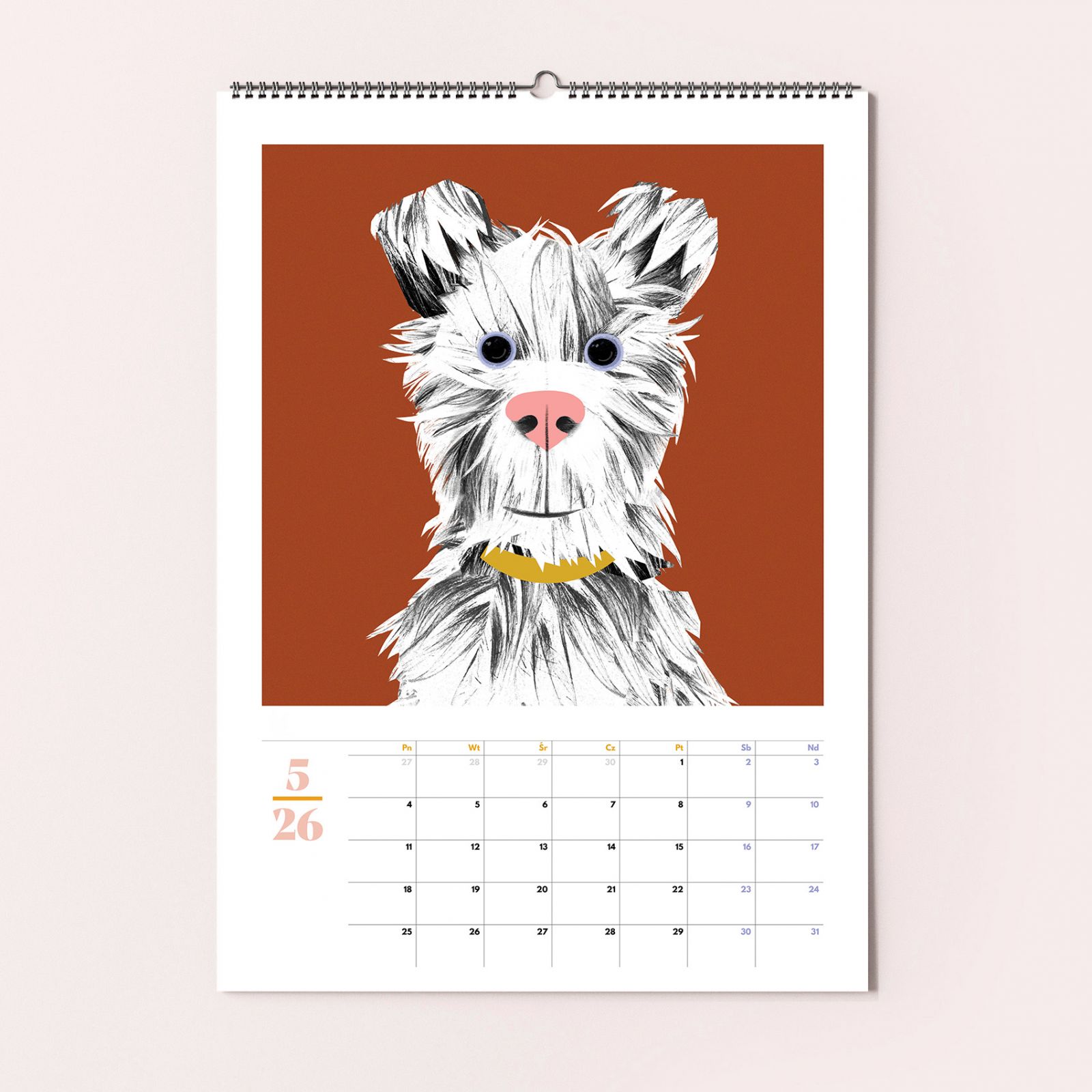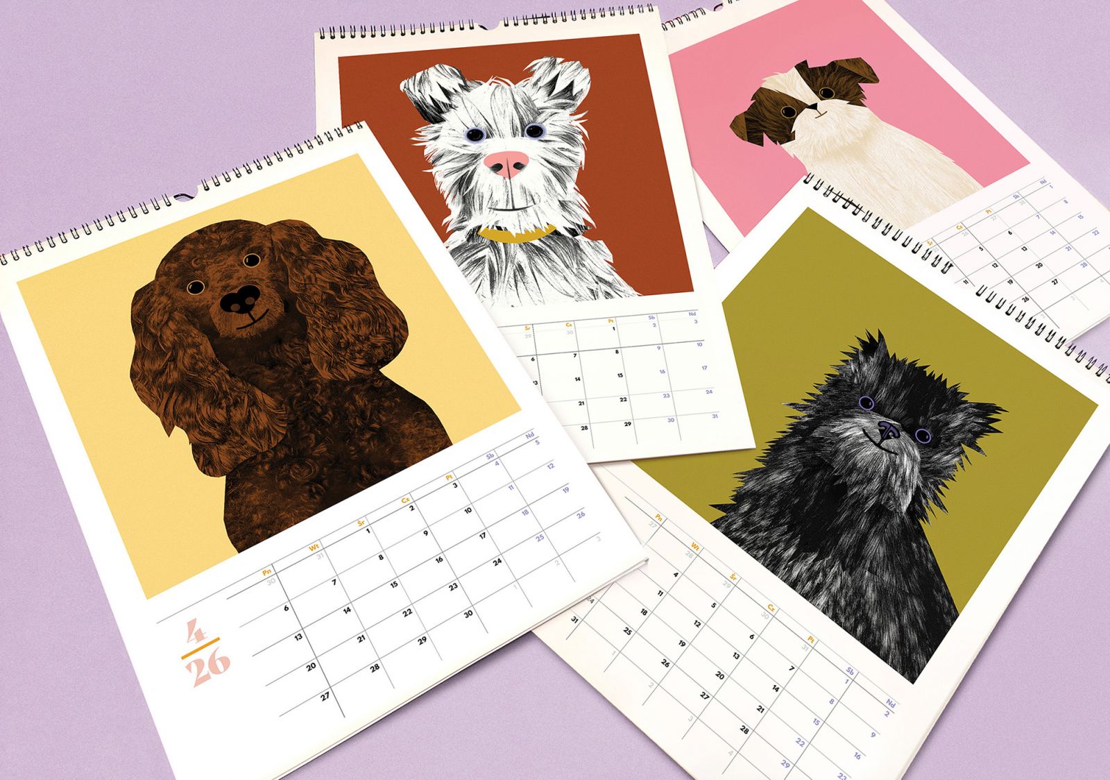 Kalendarz w formacie A3, zawiera 12 ilustracji z portretami psów, po zakończeniu roku ilustracje można wyciąć i oprawić (format po wycięciu 30x30cm).Wydrukowany na najwyższej jakości ekologicznym papierze recyklingowym.