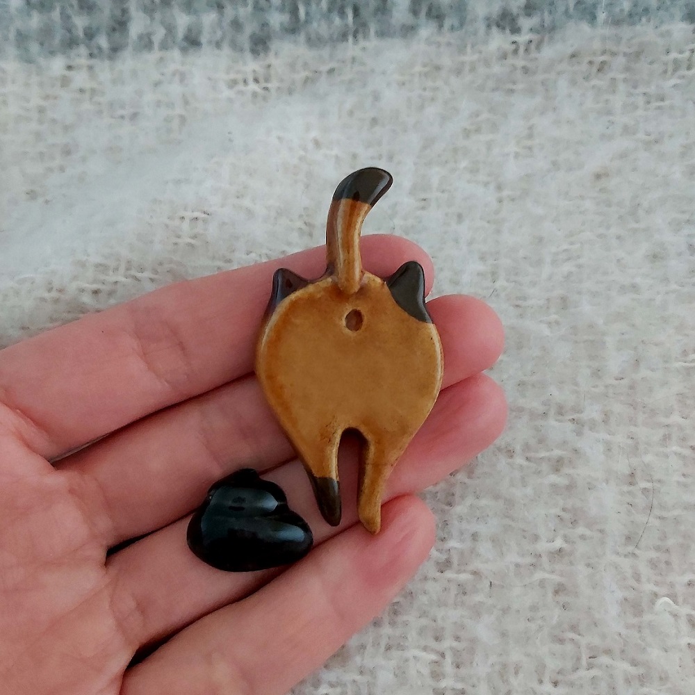 Broszka ceramiczna kot i kupa - Handmade - Rękodzieło - Lamabo