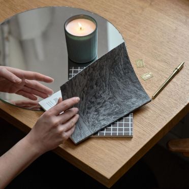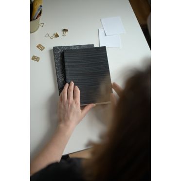 W produkcji naszych prac inspirujemy się filozofią wabi-sabi, czyli celebrowania codziennych przedmiotów i chwil, przemijalnością i małą niedoskonałością przypominającą nam o ręcznej pracy. Nasze okładki mają różną szorstkość papieru, relief, kolory – dostarczają dodatkowych przeżyć, wspierają oderwanie się od wszechobecnej technologii i powrót do rzemiosła.