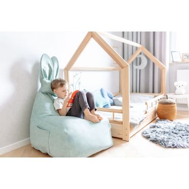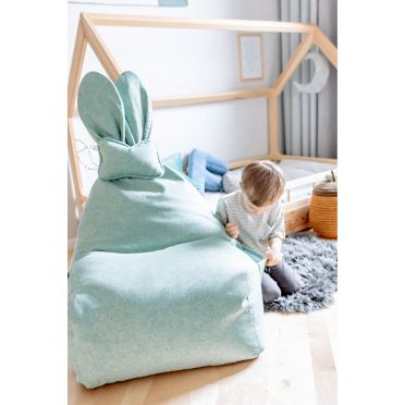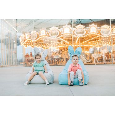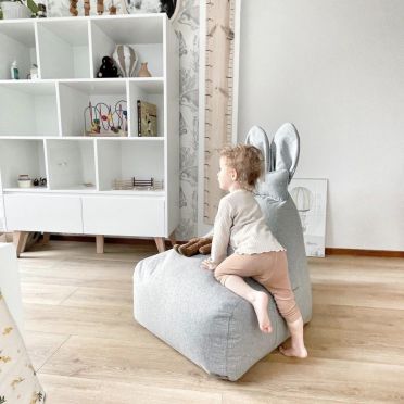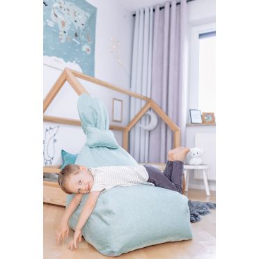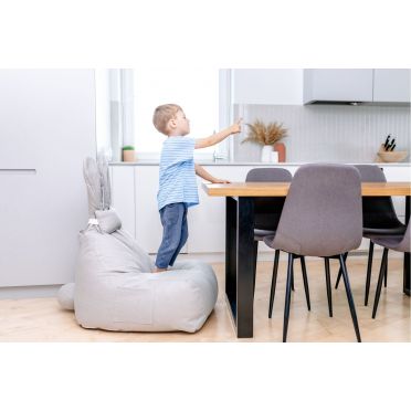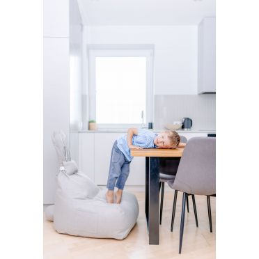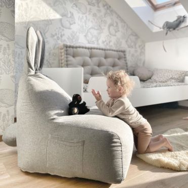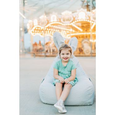 FUNNY BUNNY to bardzo wygodny puf w kształcie litery L. Większe i szerokie siedzisko zapewnia duży komfort podczas siedzenia.Górna część jest nieco węższa, dostarczając idealne podparcie pod plecy. Kształt pufa oraz styropianowe wypełnienie sprawiają, że idealnie dopasowuje się on do kształtu ciała, gwarantując wygodną pozycję. Puf wyposażony jest w wewnętrzny, dodatkowy worek, w którym znajduje się granulat styropianowy. Dzięki temu, pokrowiec może być zdjęty i wyprany, a granulat pozostanie na swoim miejscu, easy-peasy :) Materiał, z którego wykonany jest pokrowiec pufa to dzianina osnowa, która jest bardzo miła w dotyku, idealna dla ciekawskich, małych rączek i nóżek. Kokardka BUNNY to mała poduszeczka, którą można zdjąć. Puf posiada kieszonki po obu stronach siedziska, aby każdy młody odkrywca miał gdzie schować swoje mniejsze i trochę większe skarby. BUNNY będzie zawsze wesoły a jego uszy zawsze ustawione w pozycji pionowej dzięki usztywnieniu z pianki styropianowej.
