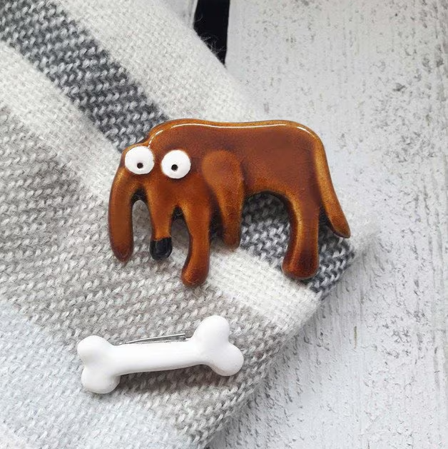 Broszka ceramiczna pies kłapouch i kość - Handmade - Rękodzieło - Lamabo