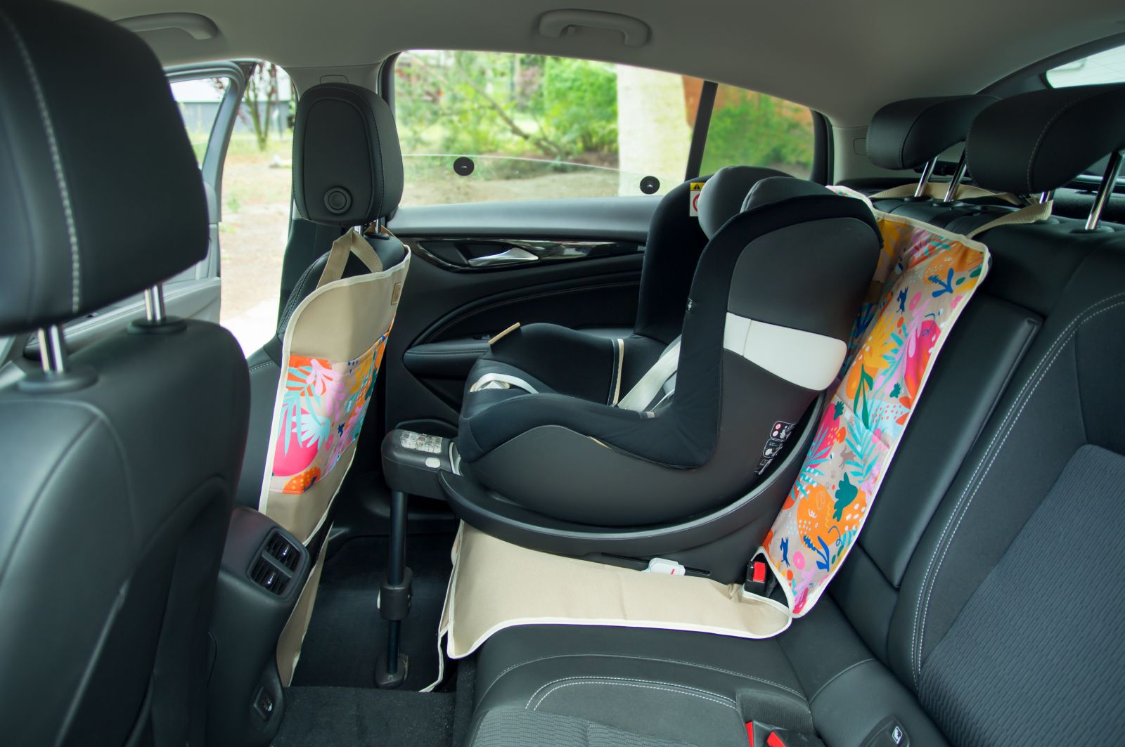 Model maty ochraniającej część tylnej kanapy pod fotelikiem dziecięcym z systemem IsoFix.