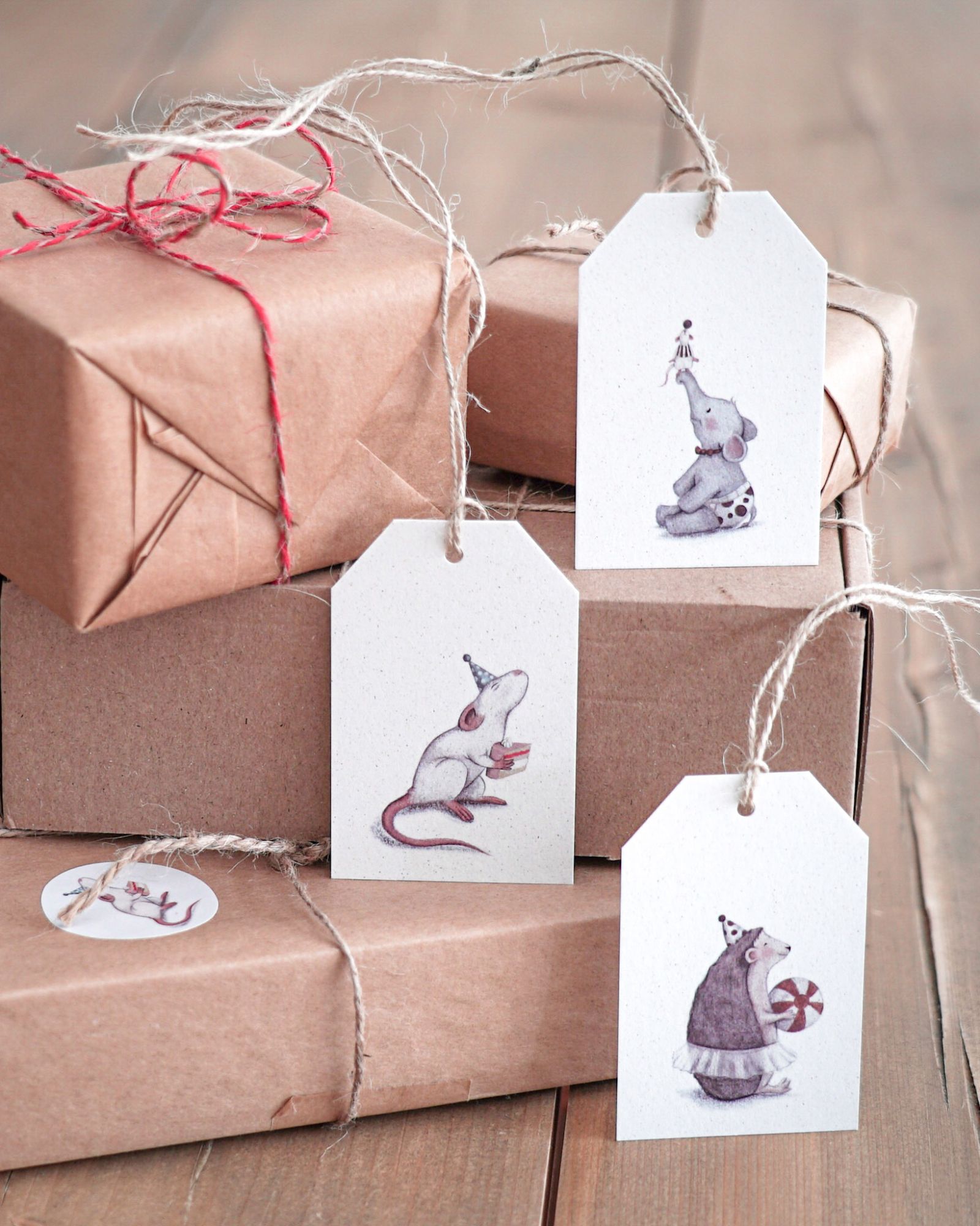 Prezentujemy nowe, przepiękne zawieszki do prezentów. W zestawie 3 bileciki widoczne na zdjęciu: myszka z tortem, jeżyk z piłką i słonik, powielone w zależności od wybranej opcji. Wspaniały pomysł na udekorowanie oraz podpisanie prezentu. Można je również wykorzystać, aby podpisać drobne upominki, które chcemy wręczyć dziecięcym gościom po skończonej imprezie.