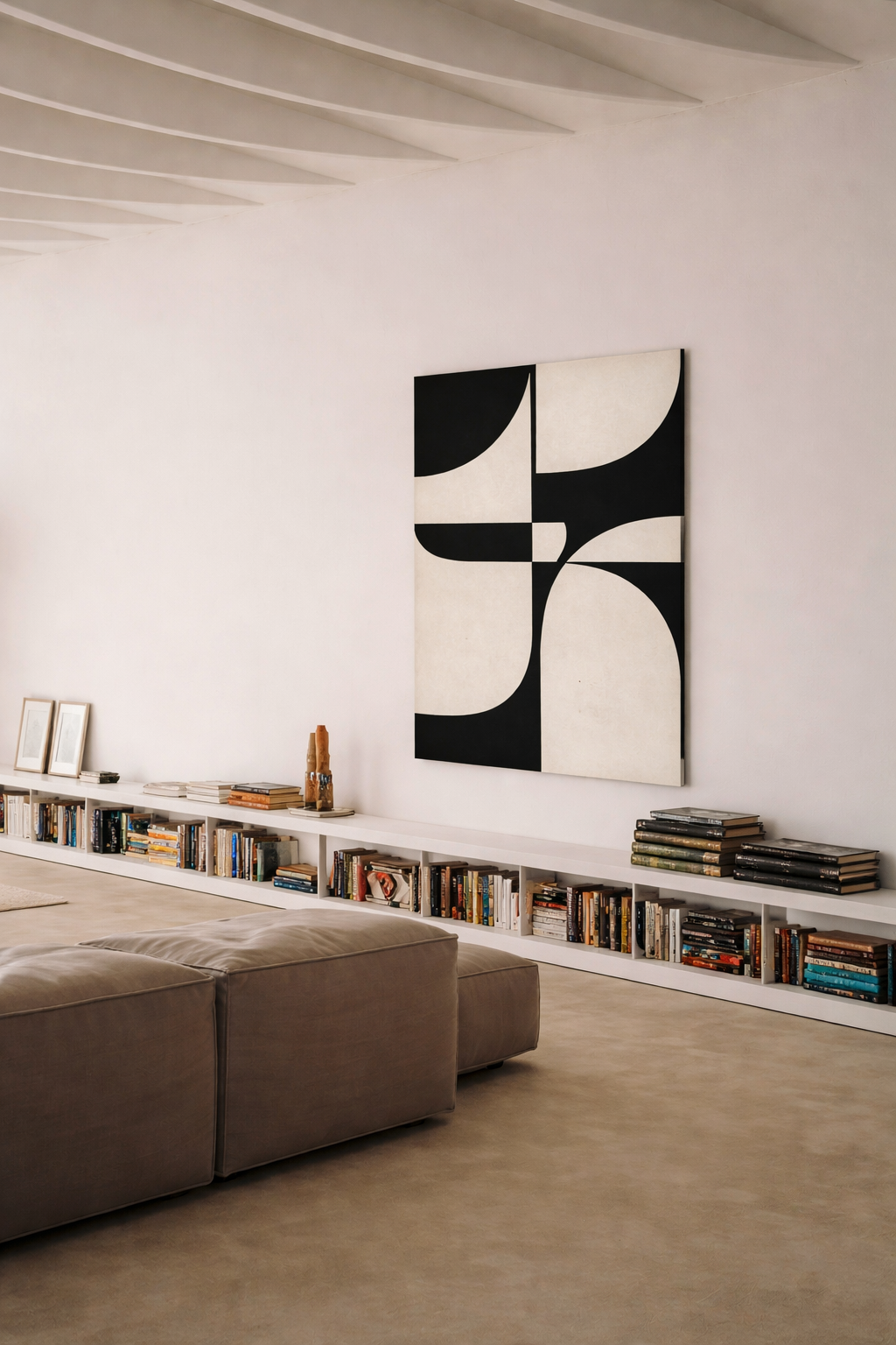 Geometryczna abstrakcja w duchu Bauhausu i mid-century modern. Ten czarno-biały plakat autorstwa Waves Warsaw to połączenie minimalistycznej formy z graficzną siłą kontrastu. Inspirowany modernizmem lat 60., typografią użytkową i architekturą brutalistyczną, tworzy mocną, ale wyrafinowaną kompozycję, która przyciąga uwagę zarówno w loftowym salonie, jak i w skandynawskim wnętrzu.