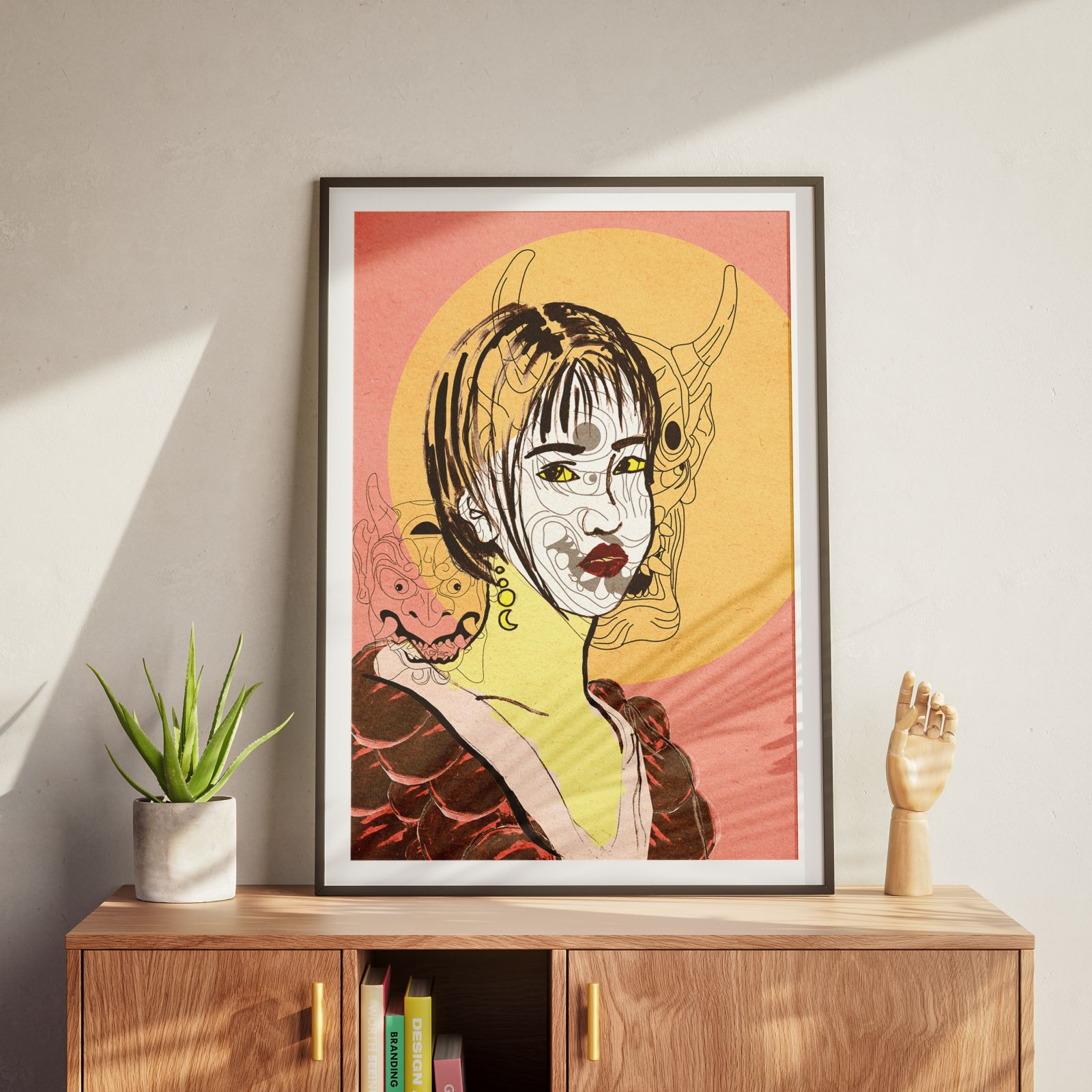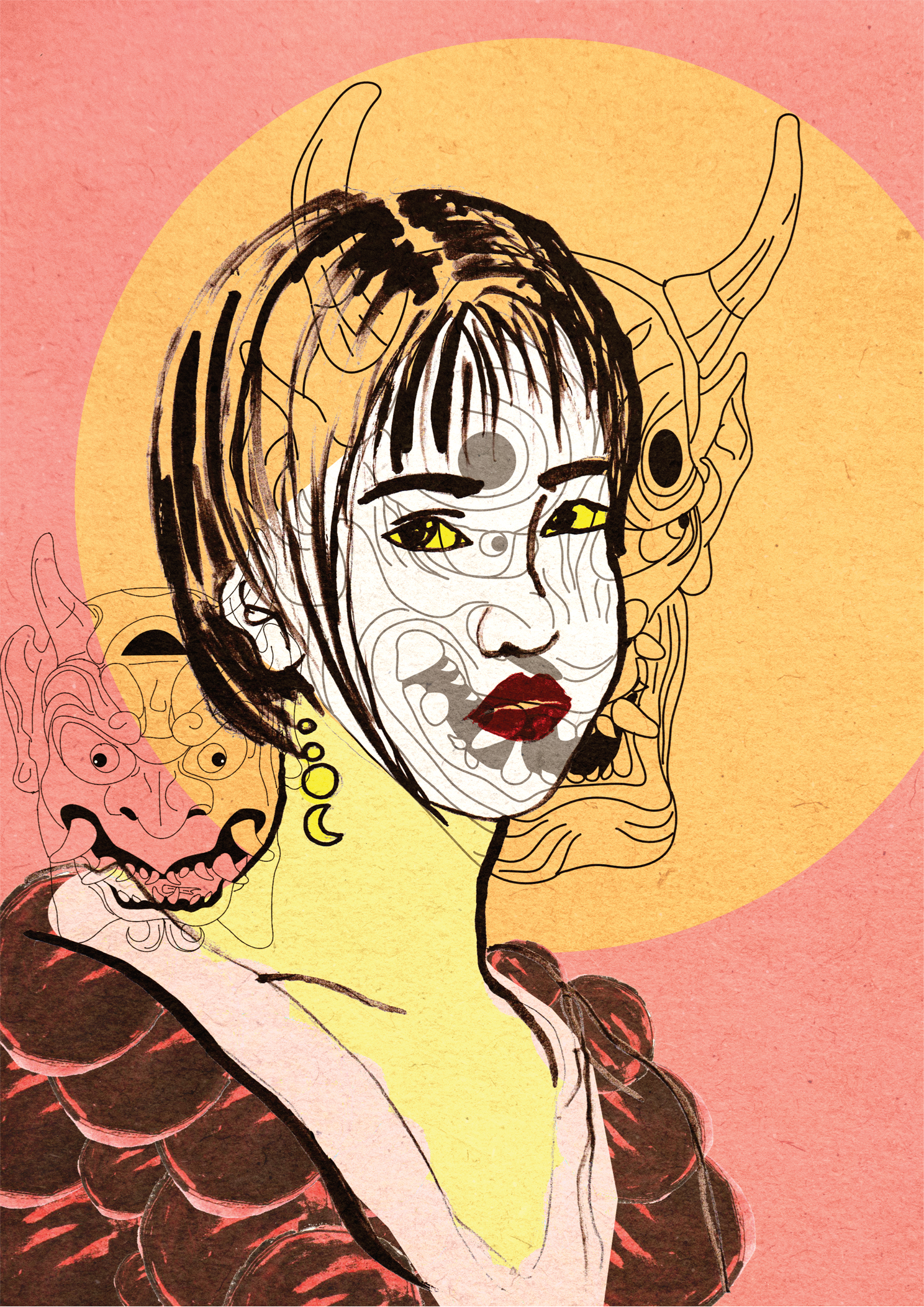 Demons in us// plakat dziewczyna z japońską maską Hannya Oni