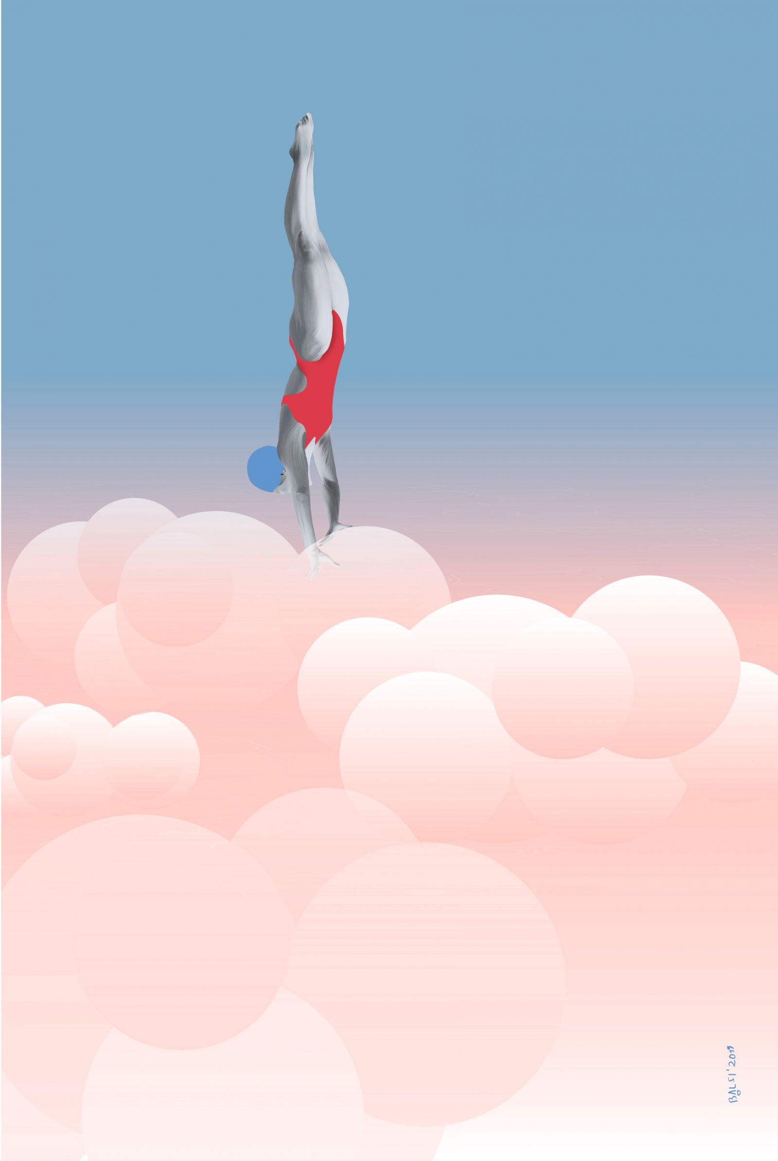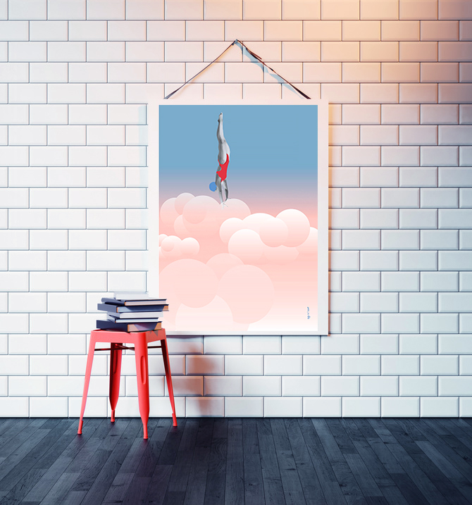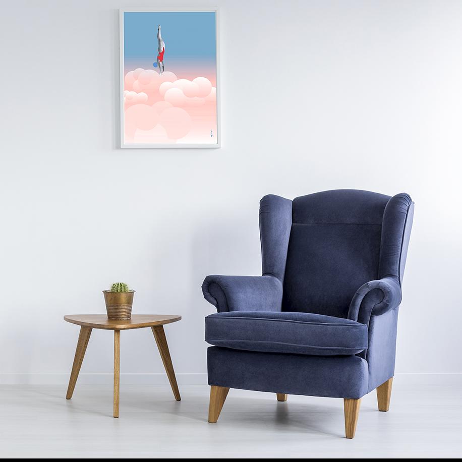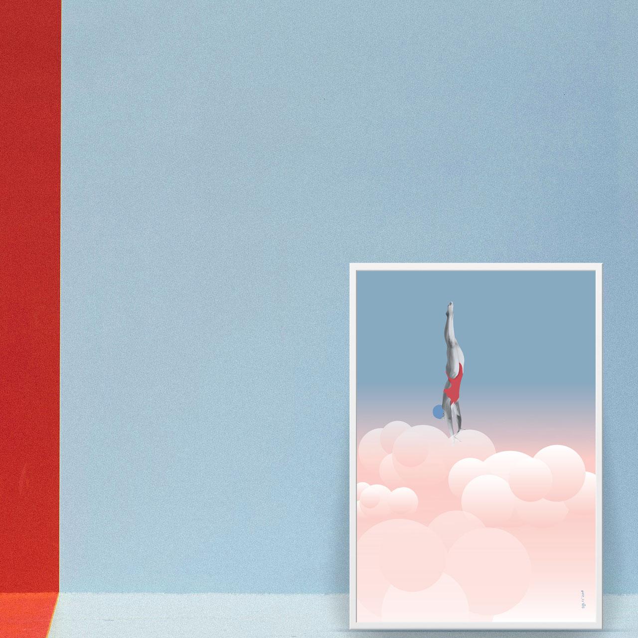 Plakat SKOK W CHMURY. Rozmiar 40X50 cm. Wydruk PIGMENTOWY, artystyczny, jakość Premium na ślicznym, gładkim, aksamitnym papierze! Plakat dostępny również w rozmiarze 30x40 cm