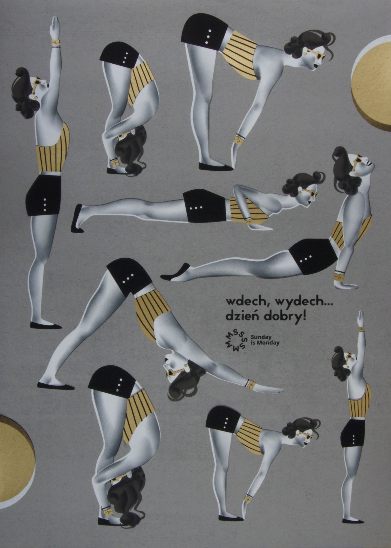 Autorką plakatu jest Iza Kaczmarek-Szurek. Na co dzień projektuje plakaty, ilustracje, a czasem nadruki na tkaniny (min. dla Łukasza Jemioła czy Gosi Baczyńskiej). Jogę porzuciła dawno temu na rzecz wyciskania kilogramów na sztandze w imię zasady: "padnij ale powstań". Dobra siłka nie jest zła!