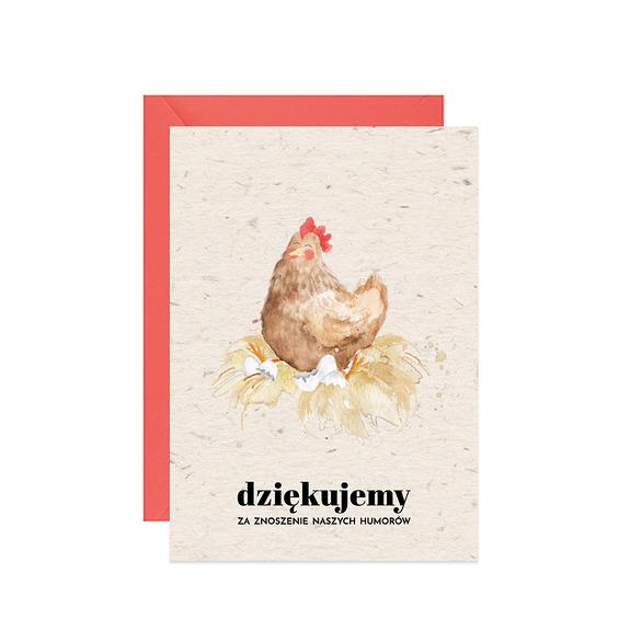 Otwierana karta z autorskim projektem Paperwords formatu A6, drukowana w Polsce na papierze z recyklingu z kopertą kraft, kremową lub kolorową (zależnie od dostępności).