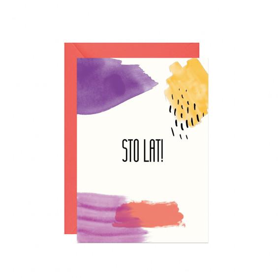 Te kolory mówią same za siebie - to dostawa energii na kolejny rok życia! Oczywiście poza zdrowiem, szczęściem i tak dalej ;) Akwarelowa kartka z życzeniami Sto lat na urodziny i inne jubileusze.