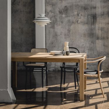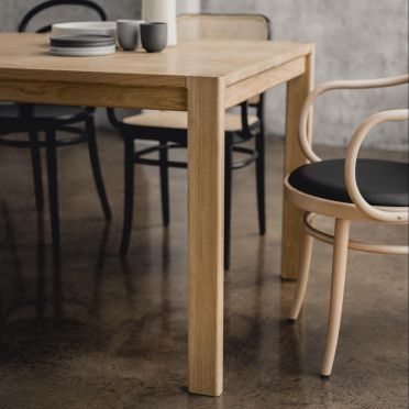 Stół object055 z prostokątnym, dębowym blatem o zaokrąglonych rogach to propozycja dla wszystkich, którzy kochają ponadczasowy design w swoim domu. Blat z ręcznie szczotkowanego drewna dębowego w naturalnym odcieniu, zaokrąglony od dołu, połączony z nogami w kolorze ecru tworzy idealnie spójną formę.