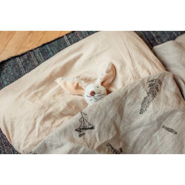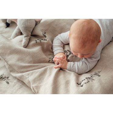 Stawiam przede wszystkim na oryginalność i ekologię, dlatego wszystkie produkty są w pierwotnym szarym odcieniu. Używam tylko naturalnych komponentów jak nici bawełniane i drewniane guziki, pościel urozmaicam ozdobnym ściegiem lub roślinnymi printami wykonywanymi ręcznie farbą na bazie naturalnych składników.
