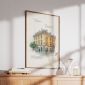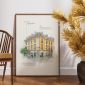 To nie tylko dekoracja, ale ilustrowana opowieść o architekturze. Plakat został zaprojektowany w formie artystycznego szkicu z elementami akwareli, wzbogaconego o merytoryczne opisy w języku polskim, które przybliżają historię, styl oraz ciekawostki związane z tym wyjątkowym budynkiem.