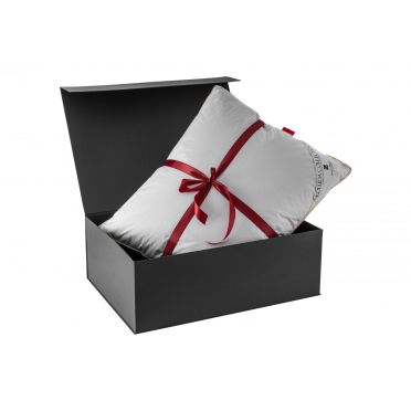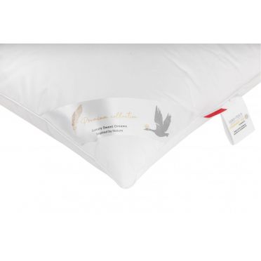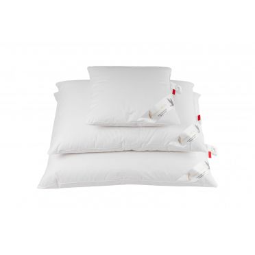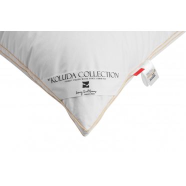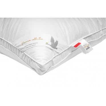 - wypełnienie: delikatny puch gęsi 60% puchu - co powoduje, że nie czujemy stosiny pióra, poduszka jest bardzo sprężysta i miękka,