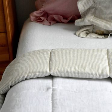Lniana kołdra bezposzewkowa - śnieżna biel, jasne paski