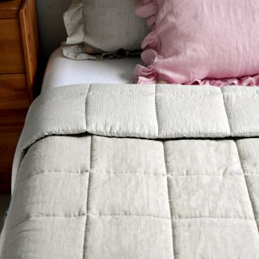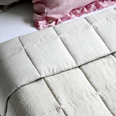 Lniana kołdra bezposzewkowa - śnieżna biel, jasne paski