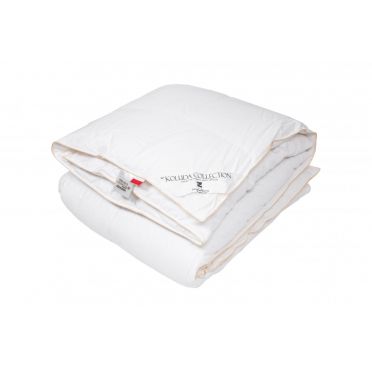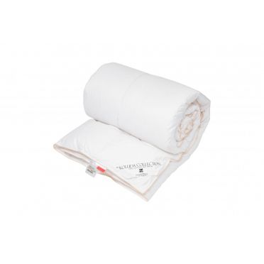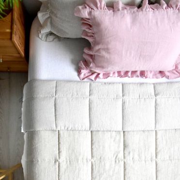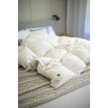 Dzięki temu, że na kołdrze nie ma dodatkowej poszewki, całość się nie rozwarstwia. Zapobiega to przesuwaniu się kołdry w środku poszewki i materiał nie plącze się. Poszycie naszej kołdry bez powlekania wykonane jest ze 100%, miłego w dotyku lnu, co bezpośrednio wpływa na komfort snu.