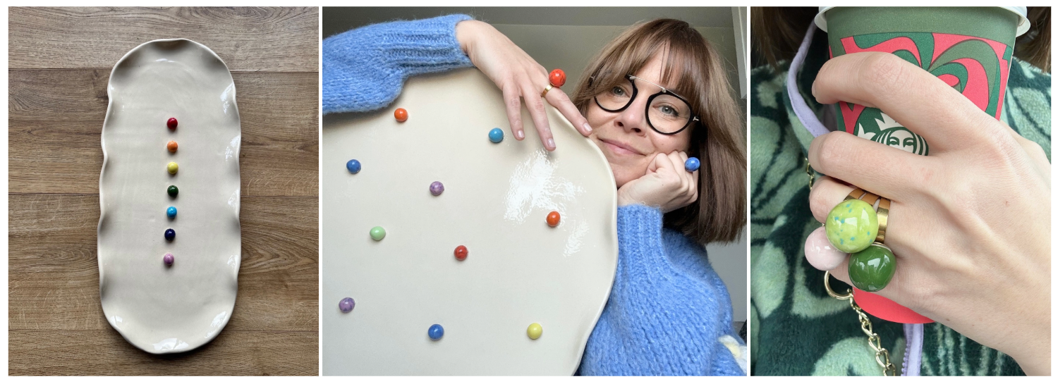 Bardzo kobieca ceramika, od ceramiczki niespokojnej - bo ciągle poszukującej, zgrabnie balansującej między różnymi dziedzinami sztuki i estetykami. “Wcześniejsze moje doświadczenia ze sztuką związane były z kulinariami i malowaniem, teraz moją miłością są ceramika i porcelana. Rzeczy, które tworzę cechuje wysoka jakość, dużo koloru i spójny design, a główną i podstawową formą jest kształt kuli, czyli Luny” - pisze o sobie Kajka. I właśnie kolorowe pierścionki w tym kształcie będą według nas idealnym prezentem na Dzień Kobiet. Kajka tworzy też patery i inne naczynia, które jak sama opisuje “zachęcają do dzielenia się”, a w ozdobach jej marki, “rzemiosło spotyka się z perłami, naturalnymi kamieniami i odrobiną przekory”. Każdy znajdzie tutaj coś, co go zauroczy! Stoisko 84 w strefie CERAMIKA I SZKŁO.