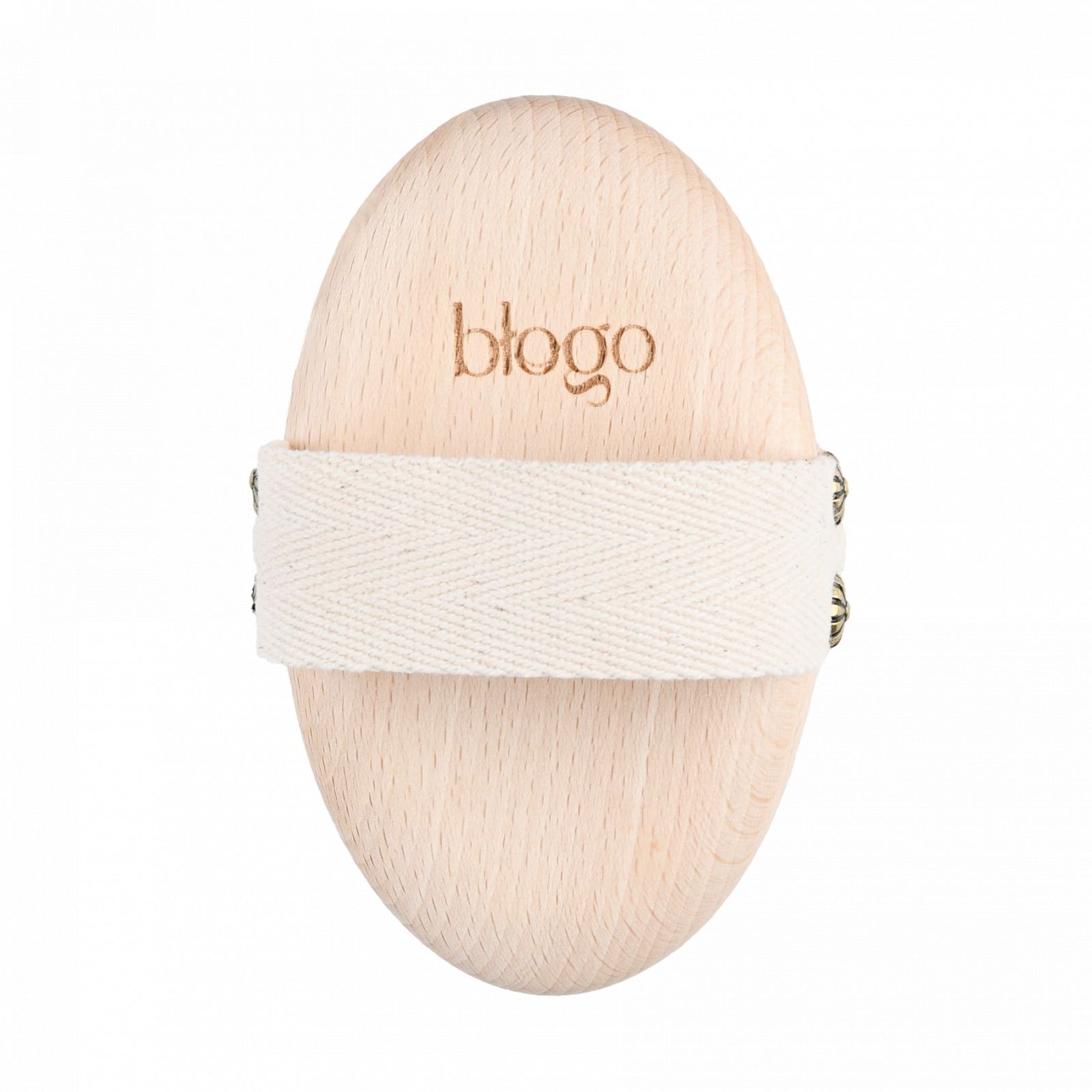 Szczotka do masażu ciała na sucho. Wykona została z naturalnej szczeciny oraz drewna bukowego.